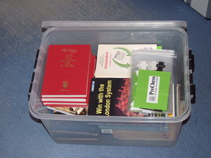 Vor dem Turnier hat uns Heinses Witwe noch ein Kiste mit Schachbüchern und Erinnerungen für die Teilnehmer unseres Gedenkturnieres überreicht.