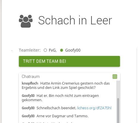 Nach Klick auf den Link https://lichess.org/team/schach-in-leer landet man auf folgender Seite: