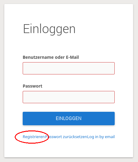 Hier auf Registrieren klicken. Dann erschient folgendes Fenster: